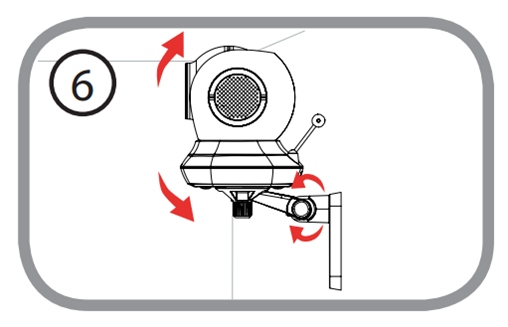 Шаг 5: Используя входящий в комплект поставки винт, прикрепите камеру к кронштейну. Подключите кабель питания к камере.