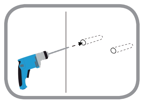 Шаг 1: Разметьте карандашом отверстия для монтажа. В зависимости от материала, из которого сделана стена, используйте подходящие инструменты, чтобы просверлить два отверстия глубиной 30 мм на расстоянии 36 мм друг от друга в размеченном месте.