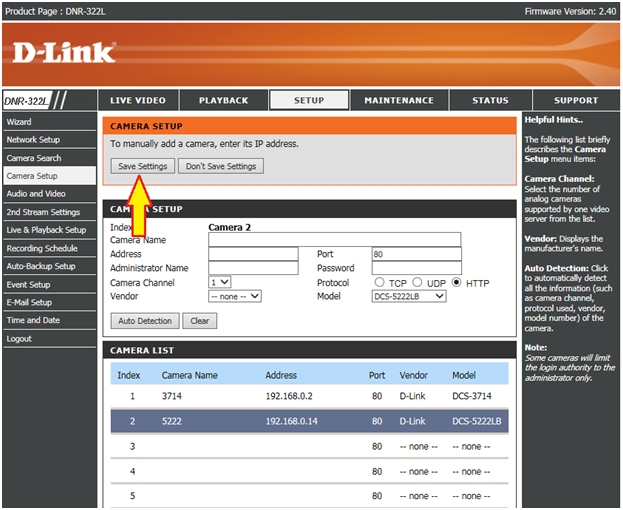 Вопрос: Как удалить камеру в сетевом видеорегистраторе DNR-322L