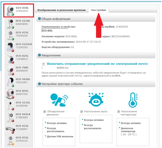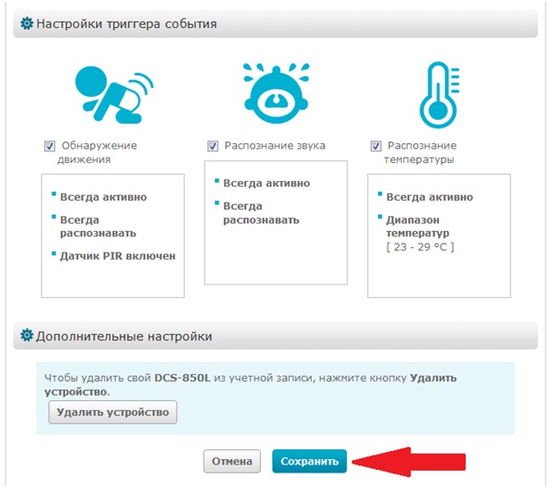 Вопрос: Как настроить функцию определения температуры на камере DCS-850L, используя сервис mydlink?