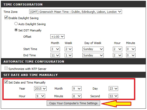 Шаг 6: Установите корректное время на камере. Вы можете скопировать время с Вашего компьютера, нажав кнопку Copy Your Computer’s Time Settings.