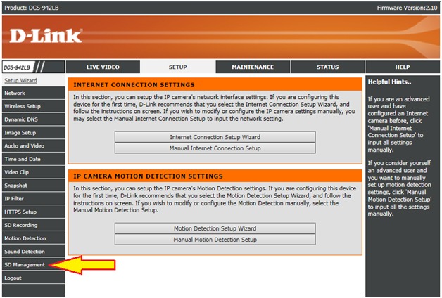 Шаг 4: Выберите SD Management (Управление SD) слева в меню.