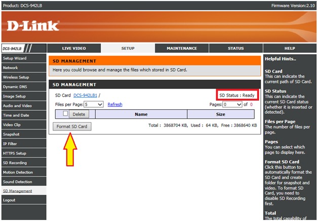 Шаг 5: Нажмите кнопку Format SD Card (Форматирование SD-карты). Убедитесь, что у SD-карты указан статус Ready (Готова).