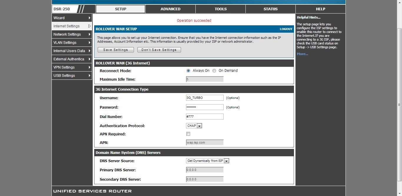 Вопрос: Настройка резервного 3G канала на маршрутизаторах DSR-150 и DSR-250