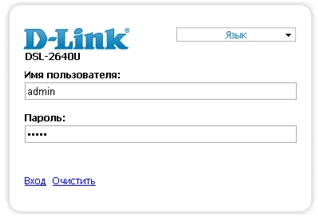 3. На открывшейся странице введите имя пользователя и пароль администратора для доступа к web-интерфейсу маршрутизатора (по умолчанию имя пользователя – admin, пароль – admin). Нажмите ссылку Вход.
