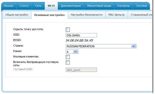 Перейдите на вкладку «Wi-Fi-Основные настройки». В данном разделе вы можете изменить имя беспроводной сети.