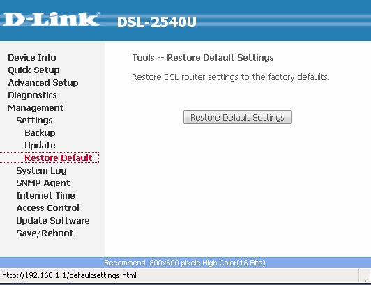 10. После завершения процесса установки ПО, сбросьте настройки модема на заводские, для этого зайдите в Management – Settings – Restore Defaults и нажмите кнопку «Restore Defaults Settings».
