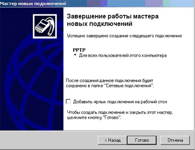 Настройка клиента PPTP (на примере Windows XP)