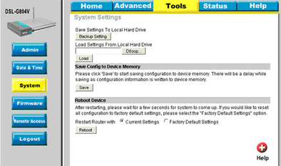 - Перезагрузите устройство: Tools > System > Restart Router with Current Settings
