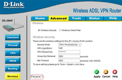 На вкладке Advanced, выберите кнопку Wireless (рисунок 1).