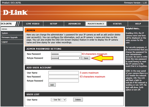 Вопрос: Как задать пароль администратора на камере DCS-2670L?