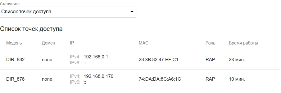 Роли устройств можно посмотреть в разделе Wi-Fi / Super Mesh в статистике Список точек доступа.