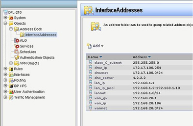 Шаг 2: Нажмите на знак «+» рядом с папкой Objects, выберите Address Book, а затем Interface Addresses.