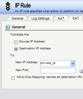 Шаг 10: Кликните по вкладке SAT и в поле New IP Address выберите private_ip (как создано в Шаге 4) из выпадающего меню и затем нажмите на OK.