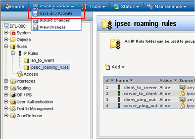 Шаг 14: Зайдите во вкладку Configuration и выберите Save and Activate. Кликните по OK, чтобы сохранить и активировать выполненные изменения.