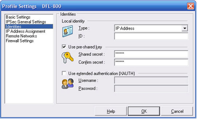 Шаг 5: Выберите Identities и введите pre-share key в поля Shared secret и Confirm secret.