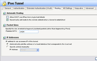 Шаг 7: Выберите вкладку Routing и отметьте галочкой Dynamically add route to the remote network when a tunnel is established, затем кликните по OK.