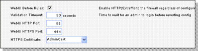 Порт управления web-интерфейса межсетевого экрана изменился. Теперь, когда Вы захотите соединиться с межсетевым экраном, Вы должны определить порт 81. Если раньше адрес был http://192.168.1.1, то теперь Вам необходимо использовать http://192.168.1.1:81. Если используется https, адрес будет иметь вид https://192.168.1.1:444.