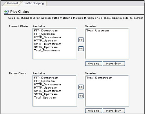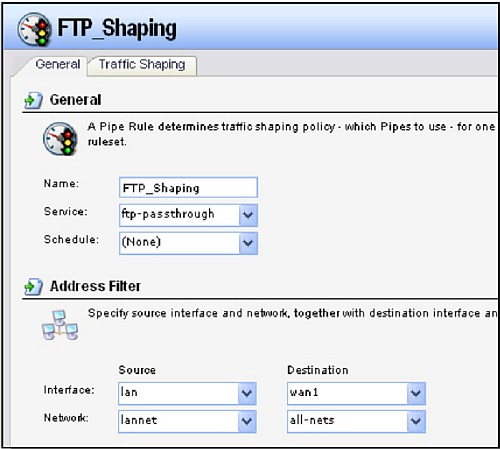 Вкладка Traffic Shaping: