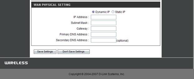 Выбираете пункт Dynamic IP. Сохраняете настройки нажатием клавиши Save Settings.