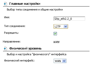 Остальные Главные настройки и Физический уровень оставьте без изменений.