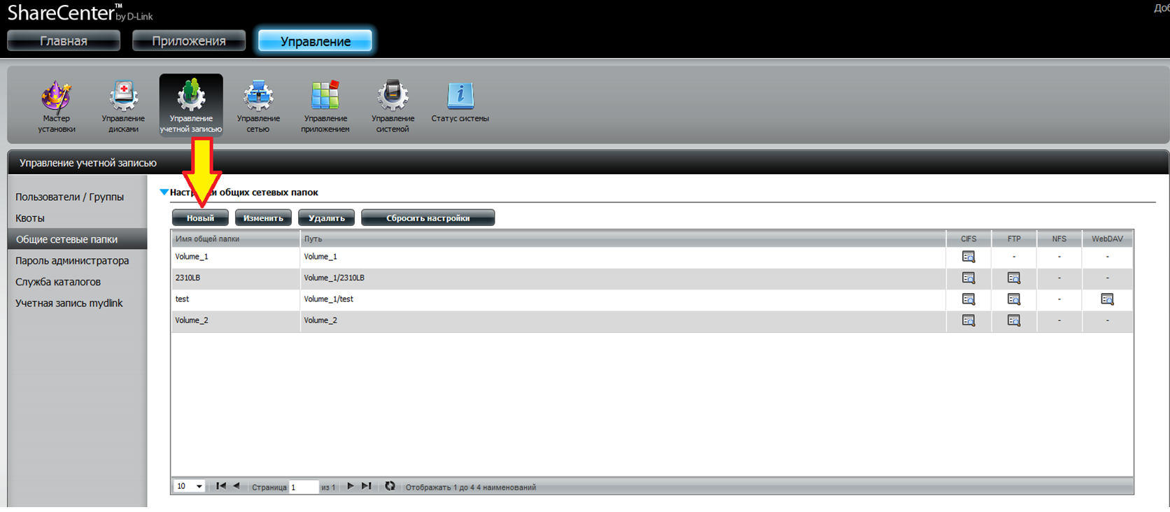 Шаг 7: В разделе Настройки общих сетевых папок нажмите Новый.