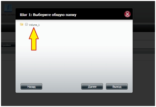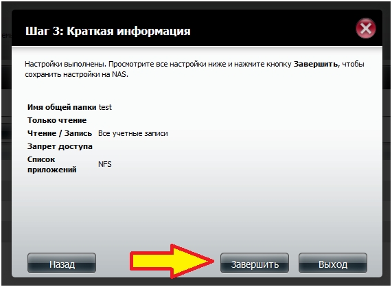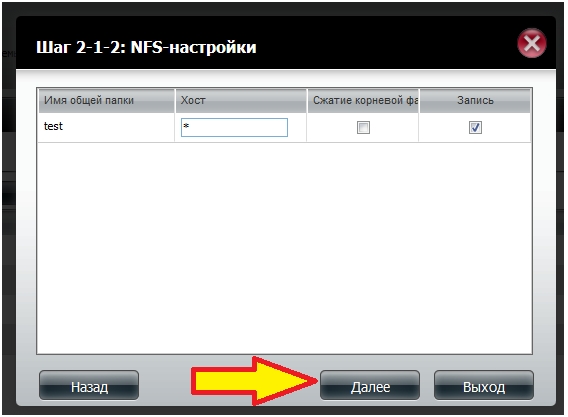 Шаг 15: Настройте опции сетевого доступа для этой папки по протоколу NFS и затем нажмите кнопку Далее.