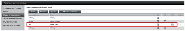Шаг 17: После сохранения настроек информация о папке для общего доступа будет отображена в соответствующей таблице.