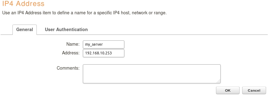 В поле Name укажите имя объекта (в примере my_server), а в поле Addresses укажите IP-адрес хоста (в примере 192.168.10.253), куда необходимо перенаправить трафик, затем нажмите кнопку ОК. Пример выполнения этих действий вы можете увидеть на рисунке 2.