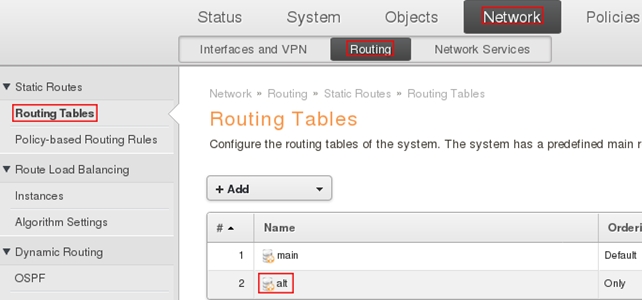 Пройдите Network → Routing → Routing tables и нажмите кнопку Add, из выпадающего меню выберите Routing Table.