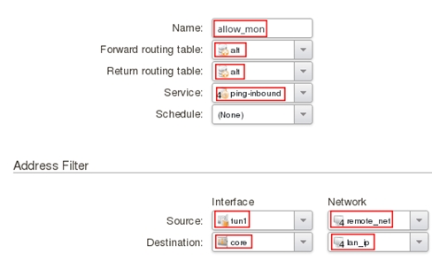 add RoutingRule Service=ping-inbound SourceInterface=tun1 SourceNetwork=remote_net DestinationInterface=core DestinationNetwork=InterfaceAddresses/lan_ip ForwardRoutingTable=alt ReturnRoutingTable=alt Name=allow_mon