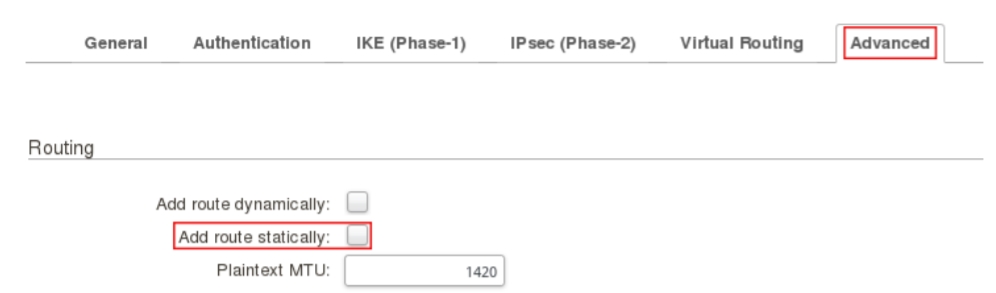ВНИМАНИЕ, только при настройки первого тоннеля изменяются настройки автоматического создания маршрутов на вкладке Advanced.
