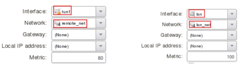 add Route Interface=tun1 Network=remote_net Metric=80 RouteMonitor=Yes EnableHostMonitoring=Yes Reachability=ALL