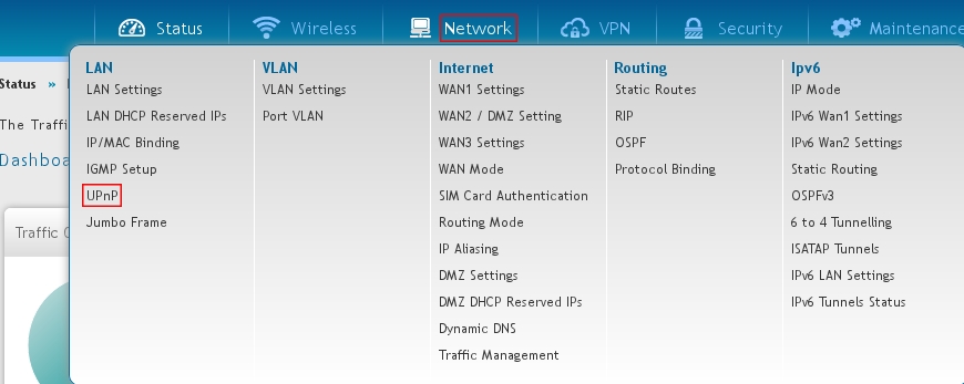 Network → UPnP