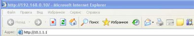 3. Настройка шлюза осуществляется через WEB-интерфейс. Для получения доступа к WEB-интерфейсу запустите Internet Explorer, в адресной строке укажите IP-адрес шлюза (по умолчанию IP адрес 10.1.1.1) и нажмите Enter.