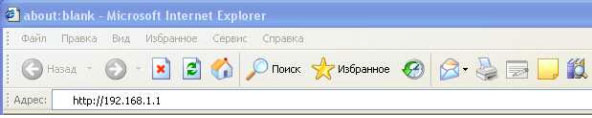 3. Настройка шлюза осуществляется через WEB-интерфейс. Для получения доступа к WEB-интерфейсу запустите Internet Explorer, в адресной строке укажите IP-адрес шлюза (по умолчанию IP адрес 192.168.1.1) и нажмите Enter.