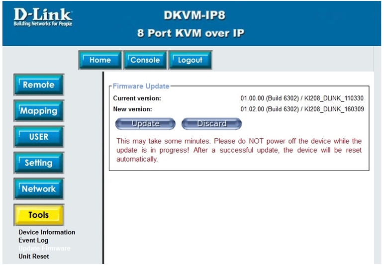 Примечание: НЕ ВЫКЛЮЧАЙТЕ питание DKVM в процессе обновления прошивки!